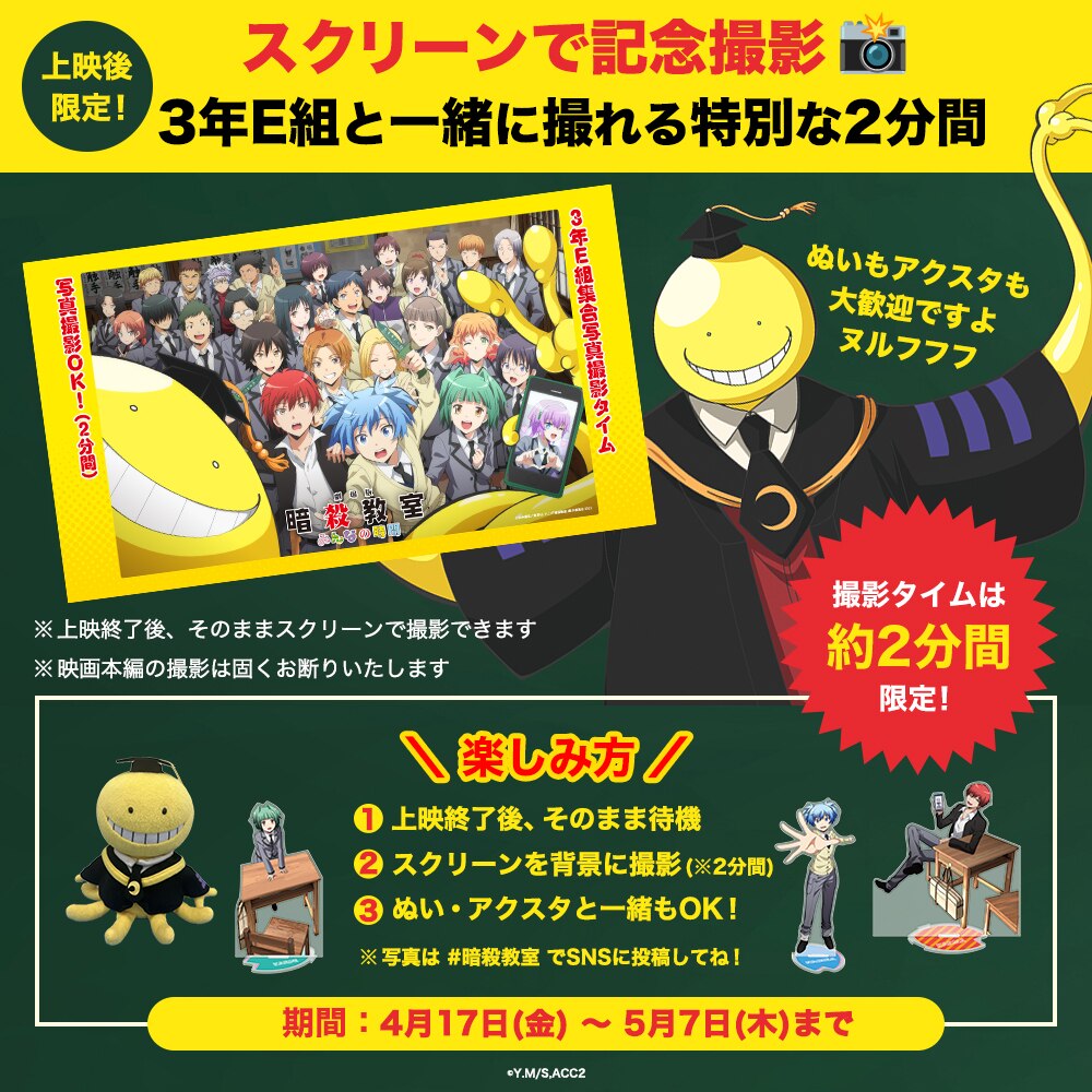 本編上映後に3年E組と写真が撮れる⁉スクリーンで記念撮影タイムの実施が決定いたしました!
