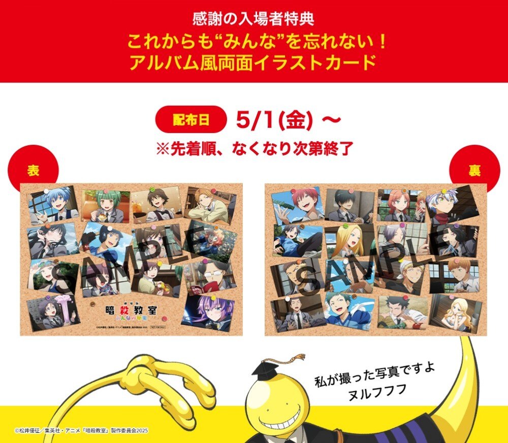 【感謝の入場者特典】を通して、皆さまと3年E組、そして殺せんせーとの思い出作りのお手伝いができたら幸いです。